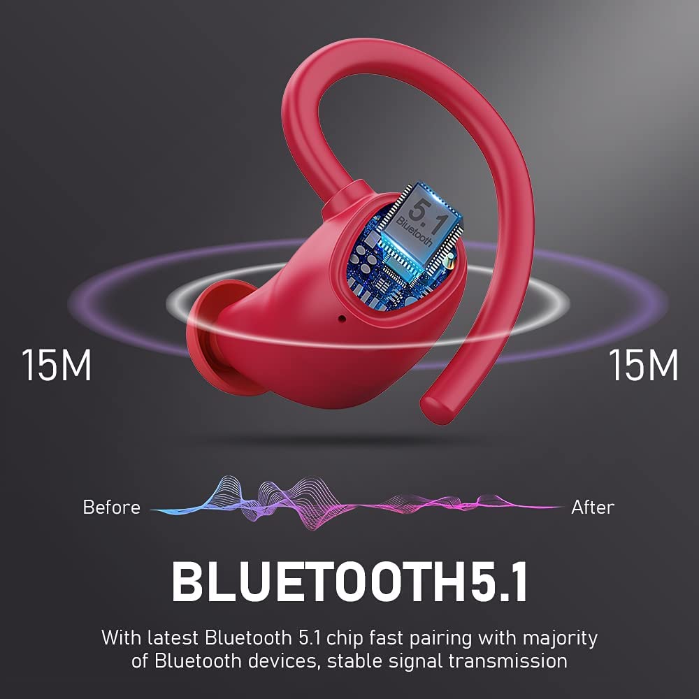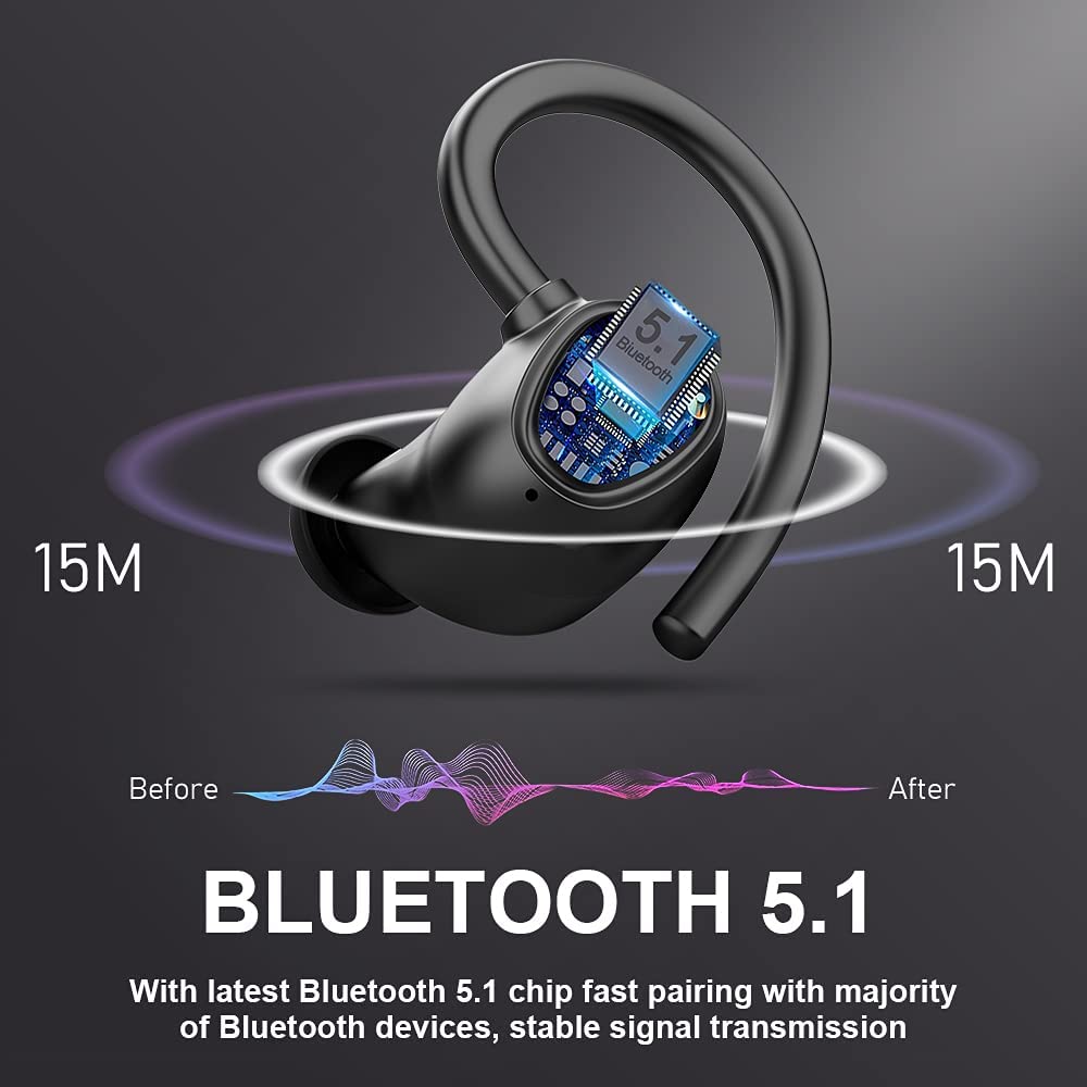 Wireless Earbud, Bluetooth 5.1 Headphones Sport Wireless Bluetooth Earphones in Ear Noise Cancelling Earbud with Mic Deep Bass, Earhooks Ear Buds IP7 Waterproof 48H Headset for Running Gym[2021 New]